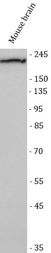 Western blot: Mouse brain stained with ARG45635 anti-RAPH1 antibody at 0.5 μg/ml dilution.