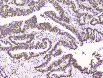 Immunohistochemistry: Paraffin-embedded Human intestinal cancer tissue. Antigen Retrieval: Heat mediated was performed in Citrate buffer (pH 6.0, epitope retrieval solution) for 20 min. The tissue section was blocked with 10% goat serum. The tissue section was then stained with ARG59051 anti-RBBP4 / RbAp48 antibody [9F3] at 2 µg/ml dilution, overnight at 4°C.