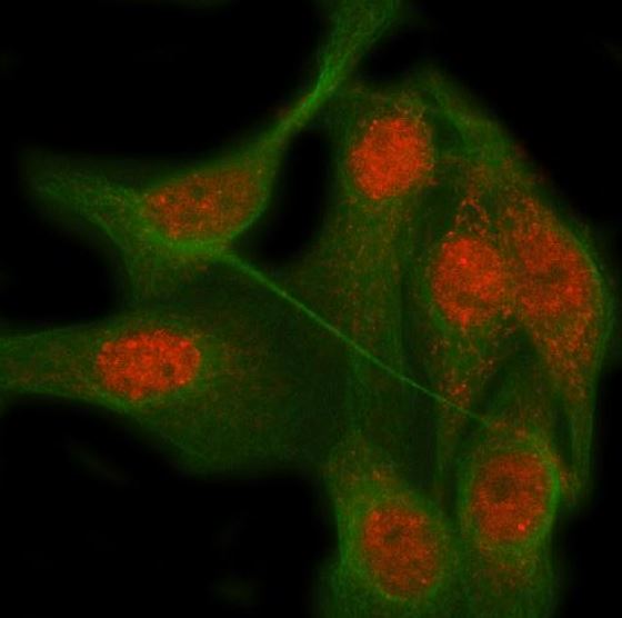 Immunofluorescence: Hela stained with ARG45405 anti-RBM12B antibody at 5 μg/ml dilution.