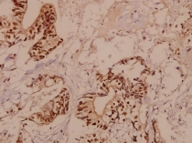 Immunohistochemistry: Paraffin-embedded Human colorectal carcinoma stained with ARG65806 anti-RBM5 antibody at 1:50 dilution.