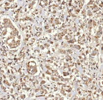 Immunohistochemistry: Human breast cancer stained with ARG45811 anti-RBMS1 antibody at 2 μg/ml dilution.