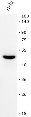 Western blot: Hela stained with ARG45811 anti-RBMS1 antibody at 0.5 μg/ml dilution.