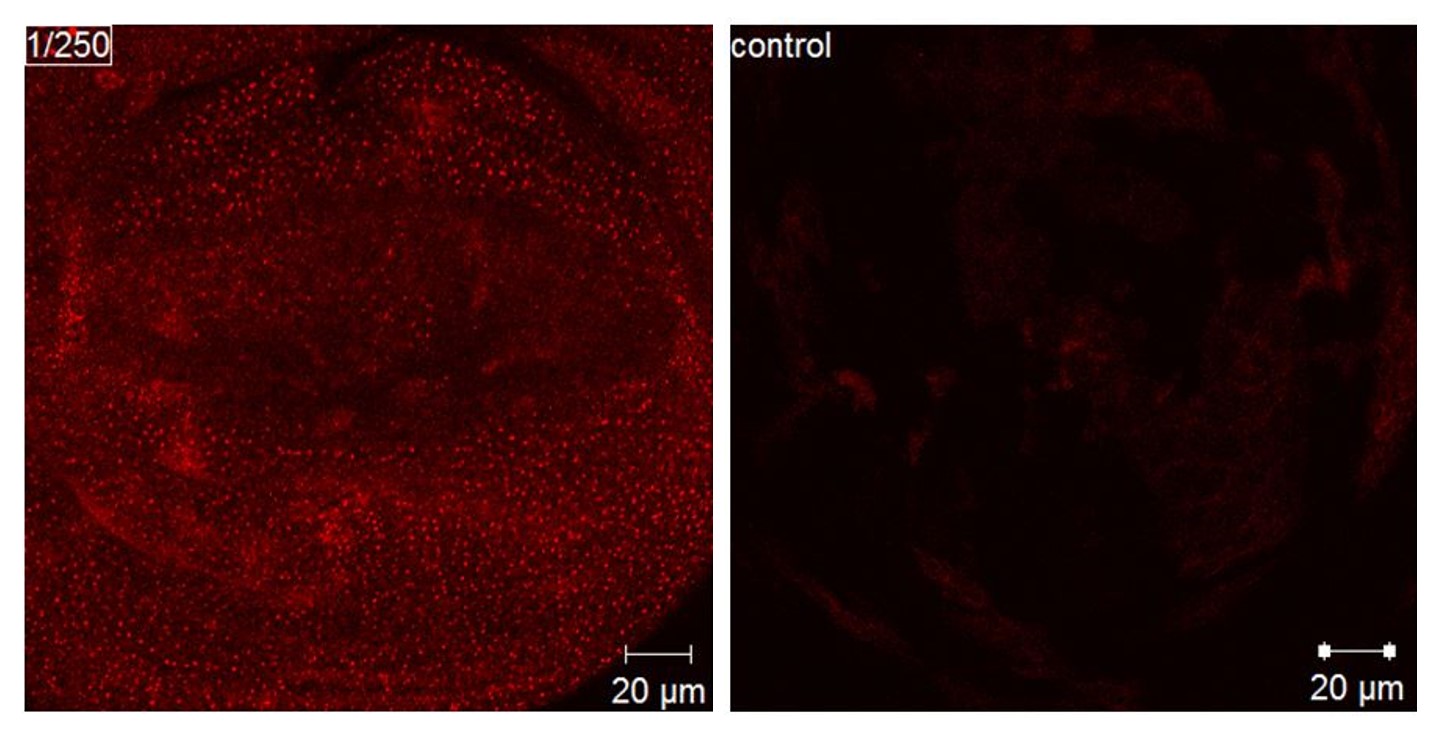 | Storage Instruction | For continuous use, store undiluted antibody at 2-8°C for up to a week. For long-term storage, aliquot and store at -20°C or below. Storage in frost free freezers is not recommended. Avoid repeated freeze/thaw cycles. Suggest spin the vial prior to opening. The antibody solution should be gently mixed before use. |
