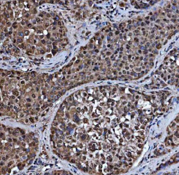 Immunohistochemistry: Human liver cancer stained with ARG45257 anti-RG9MTD1 antibody at 2 μg/ml dilution.