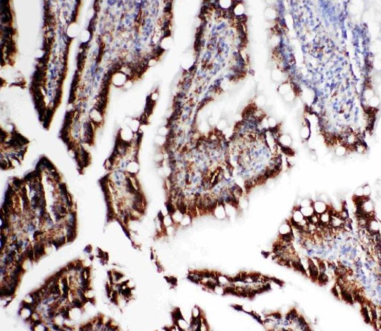 Immunohistochemistry: Rat intestine stained with ARG45599 anti-RGS3 antibody at 2 μg/ml dilution.