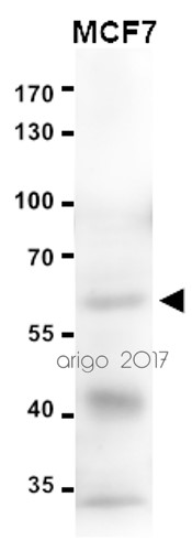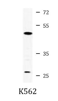 Western blot: 35 µg of K562 cell lysate stained with ARG54881 anti-RIPK3 / RIP3 antibody.