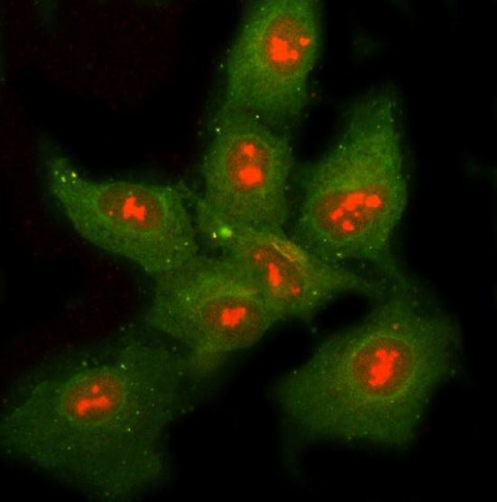 Immunofluorescence: A549 stained with ARG45306 anti-RNase H1 / RNH1 antibody at 5 ug/ml dilution.