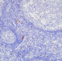 Immunohistochemistry: Formalin-fixed and paraffin-embedded tonsil stained with ARG67045 anti-ROR gamma T antibody [SQab30332].