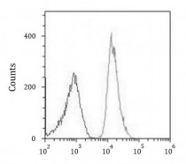 Flow Cytometry: U-2OS cells were fixed with 2% paraformaldehyde (10 min) and then permeabilized with 90% methanol for 10 min. The cells were then incubated in 2% BSA to block non-specific protein-protein interactions and stained with ARG58289 anti-RPL4 antibody (right histogram) at 1:25 dilution for 60 min at 37°C, followed by incubation with DyLight® 488 labelled secondary antibody. Isotype control antibody (left histogram) was Rabbit IgG (1 µg/10^6 cells) used under the same conditions. Acquisition of >10000 events was performed.