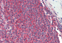 Immunohistochemistry: Paraffin-embedded Human spleen tissue. Antigen Retrieval: Steam tissue section in Citrate buffer (pH 6.0). The tissue section was stained with ARG64271 anti-RPL8 antibody at 2.5 µg/ml dilution followed by AP-staining.