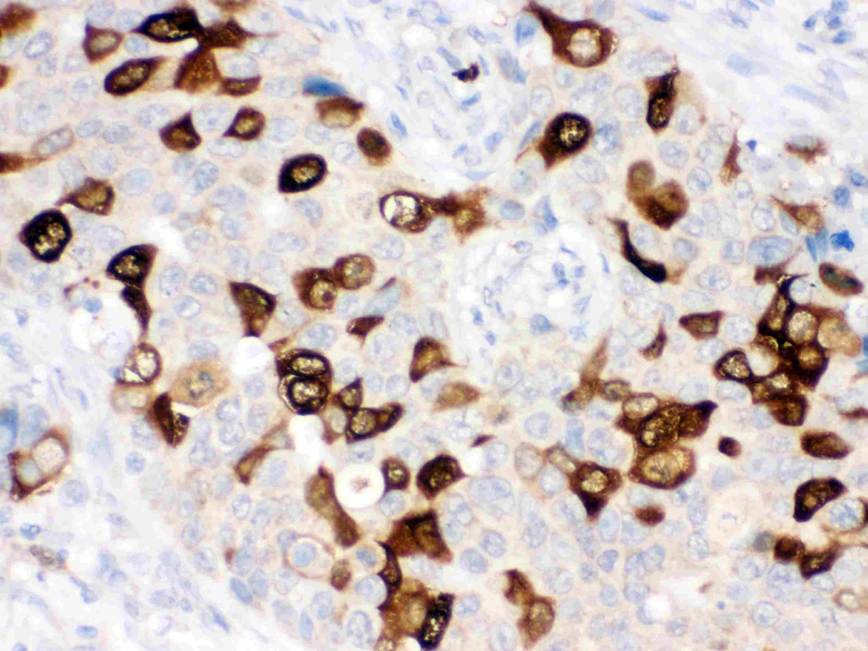 Immunohistochemistry: Paraffin-embedded Human mammary cancer stained with ARG59132 anti-RRM2 antibody.