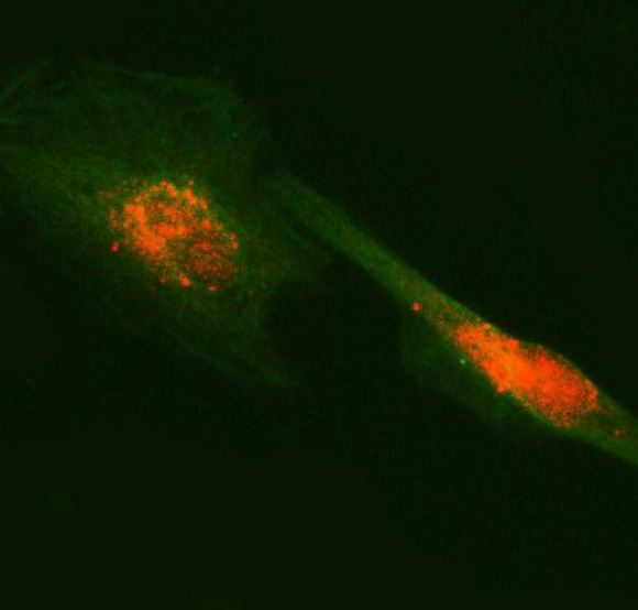 Immunofluorescence: U87 stained with ARG45320 anti-RUFY2 antibody at 5 ug/ml dilution.