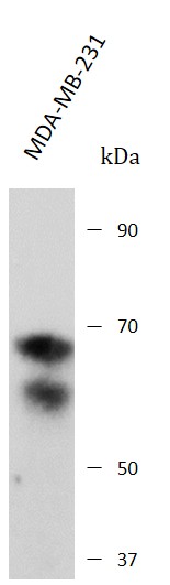 Western blot: MDA-MB-231 stained with ARG67242 anti-RUNX2 antibody at 1:500 dilution.