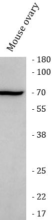 Western blot: Mouse ovary stained with ARG45955 anti-RYK antibody at 0.5 μg/ml dilution.