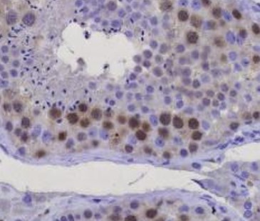 Immunohistochemistry: Human testis stained with ARG44731 anti-Rad51 antibody at 5 µg/mL dilution.