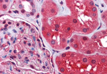 Immunohistochemistry: Paraffin-embedded Human kidney tissue. Antigen Retrieval: Steam tissue section in Citrate buffer (pH 6.0). The tissue section was stained with ARG63999 anti-Radixin antibody at 2.5 µg/ml dilution followed by AP-staining.