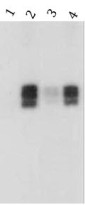 Western blot: Human RhoA GST fusion recombinant unphosphorylated (lanes 1) or phosphorylated with PKA (lanes 2, 3, 4). The blots were probed with anti-RhoA Phospho (Ser188) antibody (lanes 1-4). The latter antibody was used in the presence of no peptide (lanes 1 & 2), phospho-Rho (Ser-188) peptide (lane 3), or a non-specific phosphoserine peptide (lane 4).
