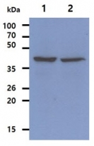 | Storage Instruction | For continuous use, store undiluted antibody at 2-8°C for up to a week. For long-term storage, aliquot and store at -20°C. Storage in frost free freezers is not recommended. Avoid repeated freeze/thaw cycles. Suggest spin the vial prior to opening. The antibody solution should be gently mixed before use. |