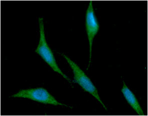 Immunoflorescense: PC3 cell line stained with ARG56988 anti-Ribonuclease Inhibitor antibody [1H23] at 1:100 (Green).