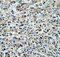 Immunohistochemistry: Formalin-fixed and paraffin-embedded Human spleen carcinoma tissue stained with ARG56554 anti-Ribonuclease T2 antibody.