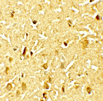 Immunohistochemistry: Paraffin-embedded Human brain tissue. Tissue was fixed with formaldehyde and blocked with 10% serum for 1 hour at RT. Antigen Retrieval: Heat mediation was performed in Citrate buffer (pH 6.0). The tissue section was stained with ARG42235 anti-SAMHD1 phospho (Thr592) antibody at 2.5 µg/ml dilution, overnight at 4°C.
