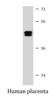 Western blot: 35 µg of Human placenta lysate stained with ARG42126 anti-SAP30BP antibody.