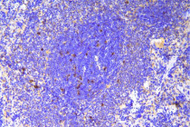 Immunohistochemistry: Paraffin-embedded Rat spleen tissue. Antigen Retrieval: Heat mediation was performed in EDTA buffer (pH 8.0). The tissue section was blocked with 10% goat serum. The tissue section was then stained with ARG42591 anti-SCN11A antibody at 1 µg/ml dilution, overnight at 4°C.