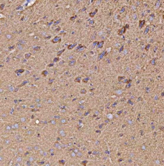 Immunohistochemistry: Rat brain stained with ARG45454 anti-SEPHS1 antibody at 2 μg/ml dilution.