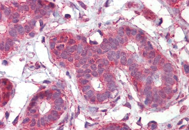 Immunohistochemistry: Paraffin-embedded Human breast tissue. Antigen Retrieval: Steam tissue section in Citrate buffer (pH 6.0). The tissue section was stained with ARG64747 anti-SEPT2 antibody at 2.5 µg/ml dilution followed by AP-staining.
