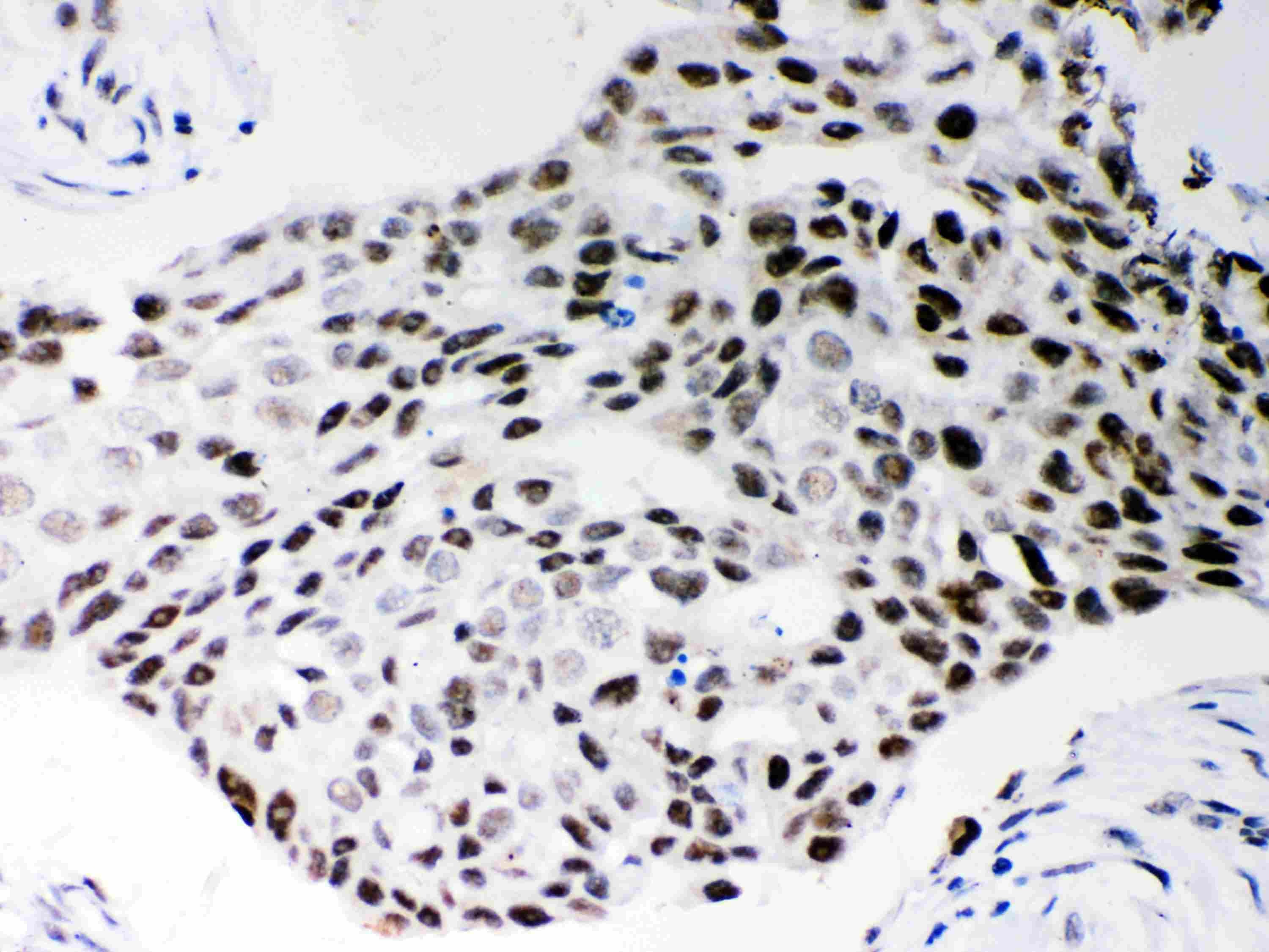 Immunohistochemistry: Paraffin-embedded Human mammary cancer stained with ARG59120 anti-SFRS1 / SF2 antibody.