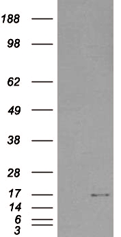 Western Blot: Human Thymus lysate (RIPA buffer, 30µg total protein per lane) stained with ARG63801 anti-SH2D1A / SAP antibody at 0.3 µg/ml dilution.