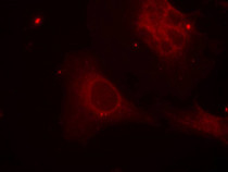 Immunofluorescence: methanol-fixed HeLa cells stained with ARG51789 anti-SHC1 phospho (Tyr349) antibody.