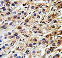 Immunohistochemistry: Formalin-fixed and paraffin-embedded Human hepatocarcinoma stained with ARG55762 anti-SHP2 antibody.