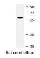 Western blot: 20 µg of Rat cerebellum lysate stained with ARG40510 anti-SLC11A2 / DMT1 antibody at 1:2000 dilution.