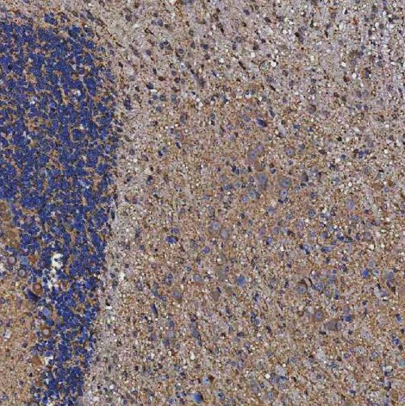 Immunohistochemistry: Mouse cerebellum stained with ARG45458 anti-SLC20A1 antibody at 2 μg/ml dilution.