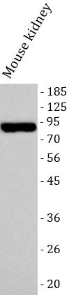 Western blot: Mouse kidney stained with ARG45458 anti-SLC20A1 antibody at 0.5 μg/ml dilution.