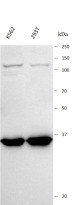 Western blot: K562 and 293T stained with ARG44523 anti-SLC22A10 antibody at 0.5 μg/mL dilution.