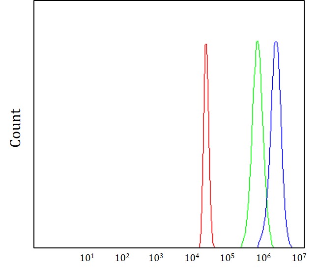 Flow Cytometry: 293T stained with ARG44523 anti-SLC22A10 antibody at 1 μg/10^6 cells dilution.