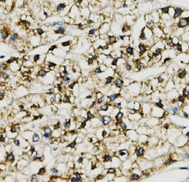 Immunohistochemistry: Human liver cancer stained with ARG45764 anti-SLC25A1 antibody at 2 μg/ml dilution.