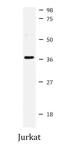 Western blot: 20 µg of Jurkat whole cell lysate stained with ARG41961 anti-SLC25A28 / Mitoferrin 2 antibody at 1:2000 dilution.