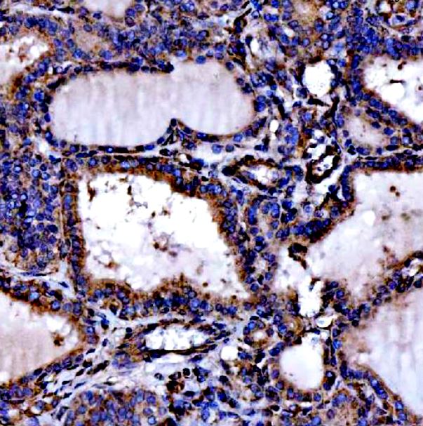 Immunohistochemistry: Human thyroid cancer stained with ARG45237 anti-SLU7 antibody at 2 μg/ml dilution.