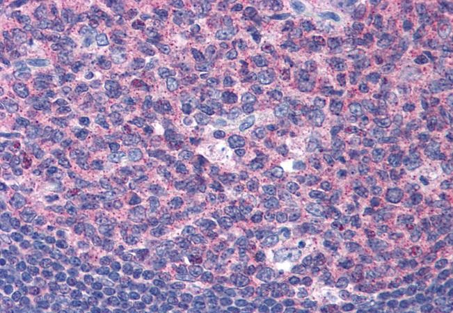Immunohistochemistry: Paraffin-embedded Human tonsil tissue. Antigen Retrieval: Steam tissue section in Citrate buffer (pH 6.0). The tissue section was stained with ARG63280 anti-SNX16 antibody at 3.75 µg/ml dilution followed by AP-staining.