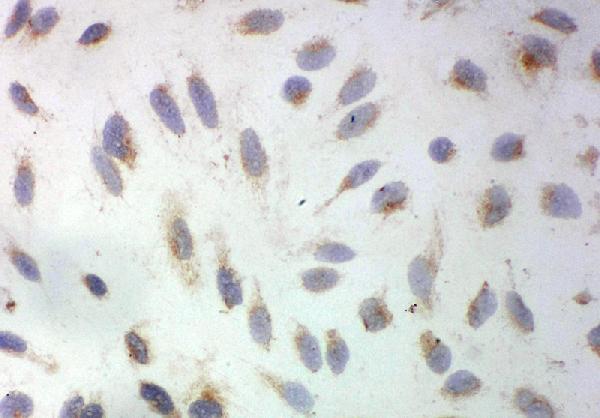 Immunocytochemistry: HeLa cells were blocked with 10% goat serum and then stained with ARG59110 anti-SOD3 antibody at 1 µg/ml dilution, overnight at 4°C.