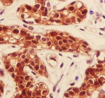 | Background | STAT5A and STAT5B are members of the STAT family of transcription factors. In response to cytokines and growth factors, STAT family members are phosphorylated by the receptor associated kinases, and then form homo- or heterodimers that translocate to the cell nucleus where they act as transcription activators. STAT5A: This protein is activated by, and mediates the responses of many cell ligands, such as IL2, IL3, IL7 GM-CSF, erythropoietin, thrombopoietin, and different growth hormones. Activation of this protein in myeloma and lymphoma associated with a TEL/JAK2 gene fusion is independent of cell stimulus and has been shown to be essential for tumorigenesis. The mouse counterpart of this gene is found to induce the expression of BCL2L1/BCL-X(L), which suggests the antiapoptotic function of this gene in cells. Alternatively spliced transcript variants have been found for this gene. [provided by RefSeq, Dec 2013] STAT5B: This protein mediates the signal transduction triggered by various cell ligands, such as IL2, IL4, CSF1, and different growth hormones. It has been shown to be involved in diverse biological processes, such as TCR signaling, apoptosis, adult mammary gland development, and sexual dimorphism of liver gene expression. This gene was found to fuse to retinoic acid receptor-alpha (RARA) gene in a small subset of acute promyelocytic leukemias (APLL). The dysregulation of the signaling pathways mediated by this protein may be the cause of the APLL. [provided by RefSeq, Jul 2008] |