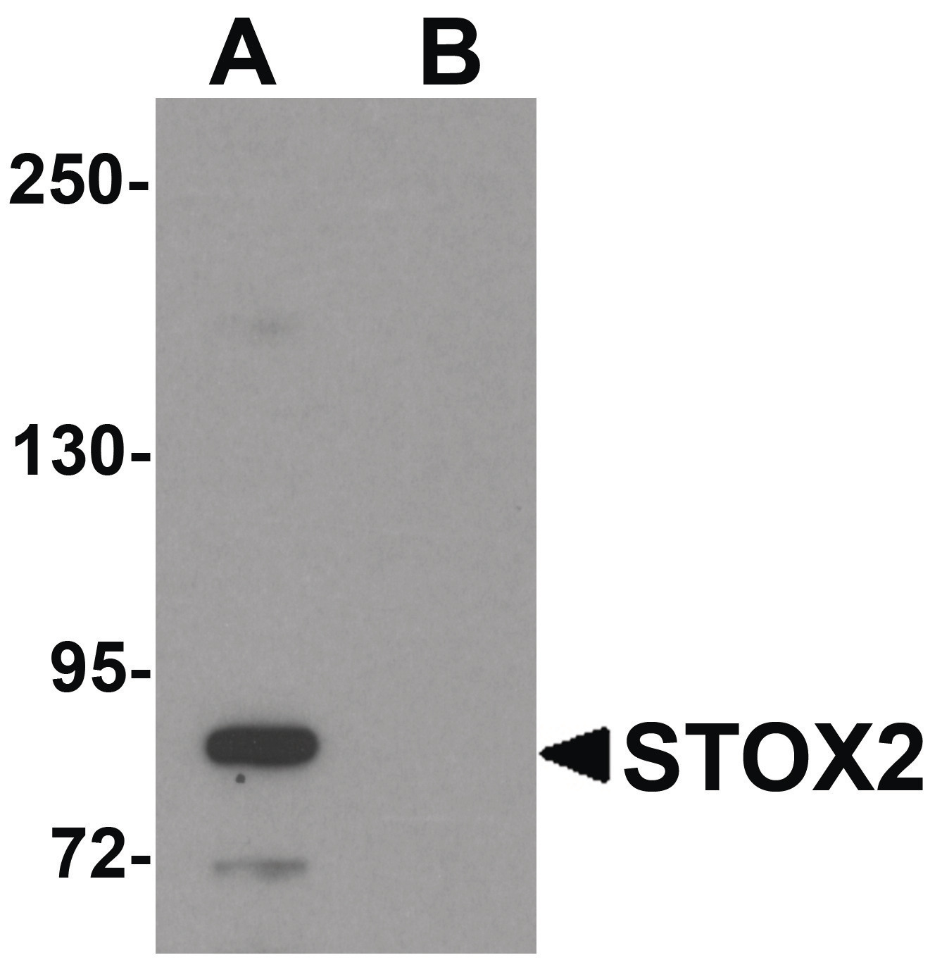 | Immunogen | Synthetic peptide (19 aa) within the last 50 aa of Human STOX2 protein. |