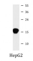 Western blot: 35 µg of HepG2 cell lysate stained with ARG59726 anti-SUMO4 (M55V) antibody.