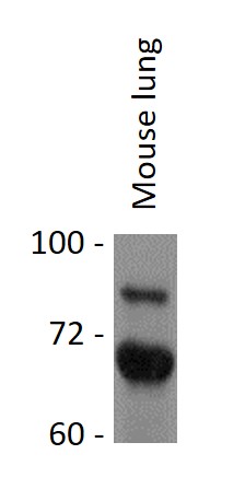 Western blot: 25 µg of Mouse lung lysate stained with ARG40186 anti-Serotonin Transporter antibody at 1:1000 dilution.