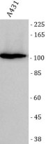 Western blot: A431 stained with ARG45908 anti-Skeletrophin / Mib2 antibody at 0.5 μg/ml dilution.