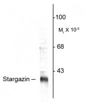 | Application Note | Specific for the ~36k stargazin protein. Immunolabeling of the stargazin band is blocked by preadsorption with the peptide used as antigen. * The dilutions indicate recommended starting dilutions and the optimal dilutions or concentrations should be determined by the scientist. |
