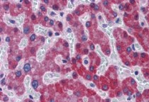 Immunohistochemistry: paraffin embedded Human Liver. (Steamed antigen retrieval with citrate buffer pH 6) stained with ARG63876 anti-Stearoyl-CoA desaturase antibody at 5 µg/ml dilution followed by AP-staining.